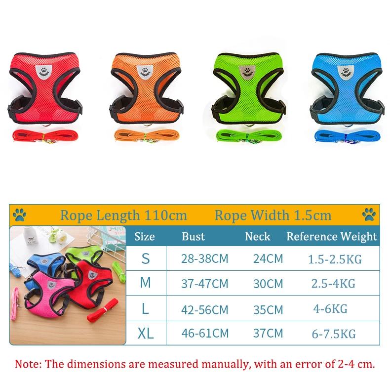 Nylon Breathable Mesh Dog Harness and Leash Set Dog Cat Vest Harness for Small Dogs Kitten Cat Accessories Pet Supplies